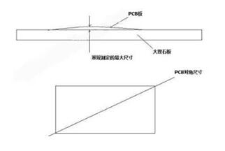 PCB翹曲度的測(cè)試方法應(yīng)遵照IPC-TM-650.2.4.22B里面的規(guī)定,首先將PCB板放于平整大理石臺(tái)面或者厚度大于5MM的玻璃上面,使用測(cè)試針規(guī)插到翹曲度最大的地方,測(cè)量出來(lái)尺寸,然后和PCB對(duì)角的長(zhǎng)度尺寸相除,得到比例大于0.75%,即為翹曲。