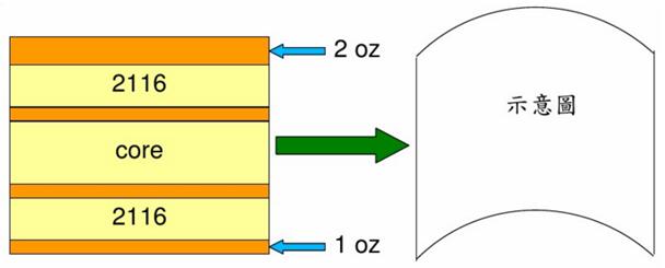 下圖為線路層成品銅厚不對(duì)稱。