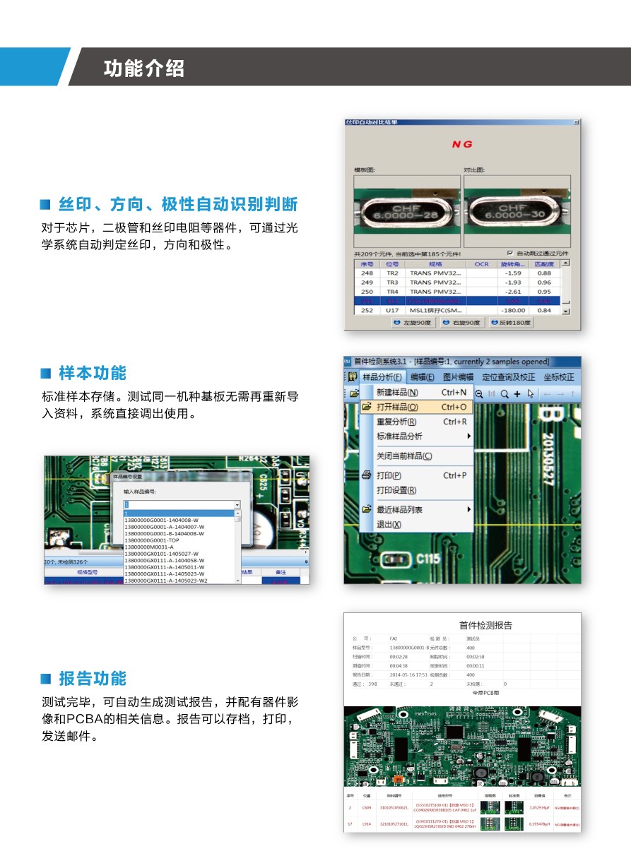 | 設(shè)備功能 | 測(cè)值、絲印對(duì)比、貼裝角度判別、檢測(cè)未貼裝 |